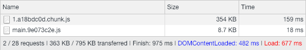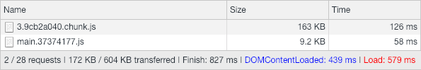 As you can see the bundle size increased a bit, so at first it may seem as the performance would be worse. But take a look what happens if we reload the page.