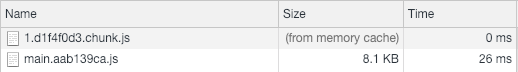 The new bundle is created, however as no dependencies were changed or added only the main file was recompiled and only that one has to be downloaded again (the one with our code). Thanks to that we have to download just 8 KB in 18 ms instead of the whole 417 KB.