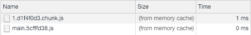 The files were not downloaded again from the server and were retrieved from the browser cache. But this behaviour would also happen if we didn’t split right? Right, but take another look at it after we have changed something in our code.