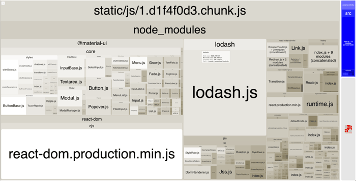 Another technique that bundling our app with tools like webpack allows us is tree shaking – not including unused code into the bundle. This one unfortunately will require from us (and the package we are using) some more work than just changing things in config. But bear with me, it’s not hard.In your app you are using lodash – a collection of useful utility functions. Using the plugin called webpack-bundle-analyzer we can inspect how does our bundle look like and what files take how much space.