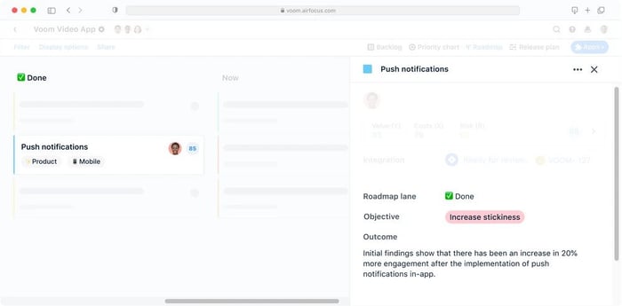 Airfocus comes with an intuitive and user-friendly roadmap builder that is highly convenient for working with an outcome-based roadmap.