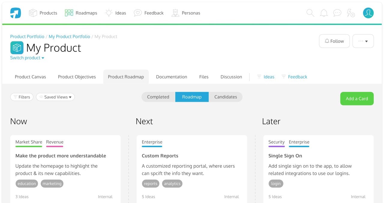 A dynamic roadmap is a powerful and robust tool. Proactive, detail-rich progress updates keep everyone informed of how the product strategy is progressing.