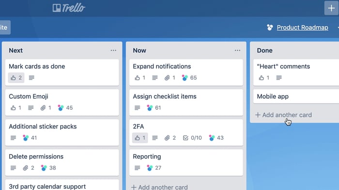 Trello is a swell tool for making a Kanban Board and organizing your tasks. But you can also use it for roadmaps. It’s super intuitive and easy to use and has many practical integrations and features. You can also save time by using one of the templates provided.