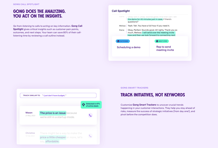 For instance, Gong AI records and evaluates calls, offering data-driven recommendations for coaching and optimizing sales techniques.