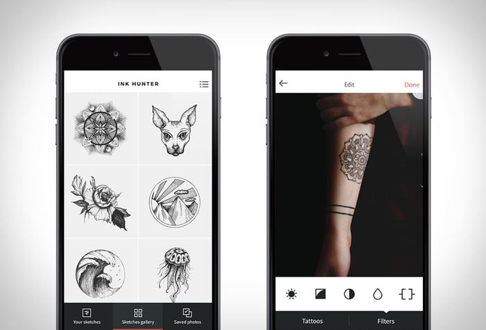 Augmented Reality can help you with this. Inkhunter is another example of marker-based AR which places a virtual tattoo on your body. The first step is to use Inkhunter to draw a smile on your hand or wherever you want to have a tattoo. The smile is used as a marker in this app. Now it’s time to select a piece of art and point your smartphone’s camera at the smile you just drew.