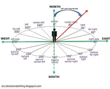Azimuth is a special type of heading angle (angle between two points in reference to the north). In case of azimuth, one point is your location and the second point is based on the direction you are facing.