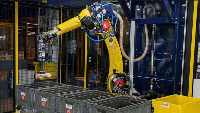 Sparrow, Amazon's latest intelligent robotic system, enhances the fulfillment process by handling individual products prior to packaging, representing a significant technological breakthrough to support the workforce.