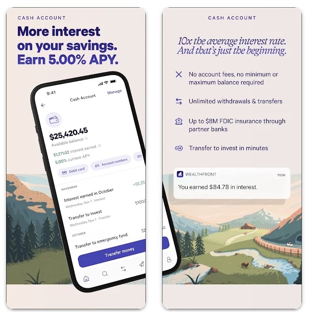 Passive investment strategy: Wealthfront follows a passive investment strategy, which means it focuses on building and maintaining a portfolio designed to achieve long-term goals. It uses Modern Portfolio Theory and aims to maximize returns for a given level of risk.