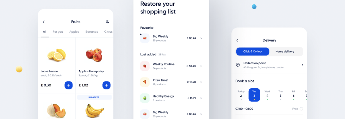 Click and Collect - a shopping app that enables you to order things to your local store or directly to your home