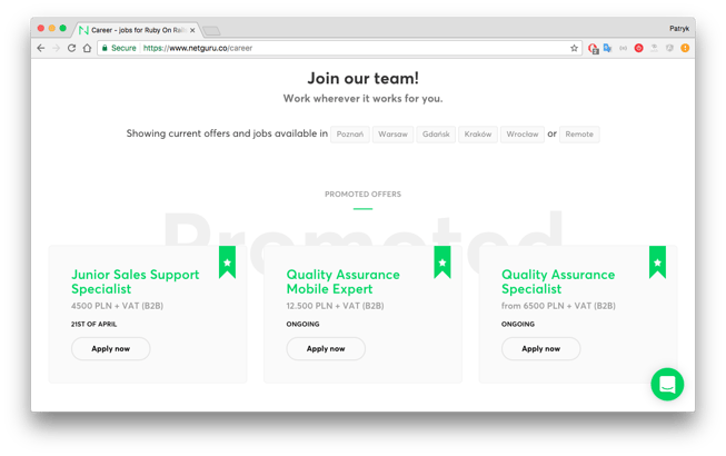 Can you see the "Promoted” caption in the background below job ads? Let’s imagine that we start coding this section, and we have already styled our h1 tag to look exactly as “Promoted”. So should we use h1 for it? The answer is NO. The title that describes this section is “Promoted offers” and the big piece of text in the background that reads “Promoted” is only a decoration which can fit into the usual div.