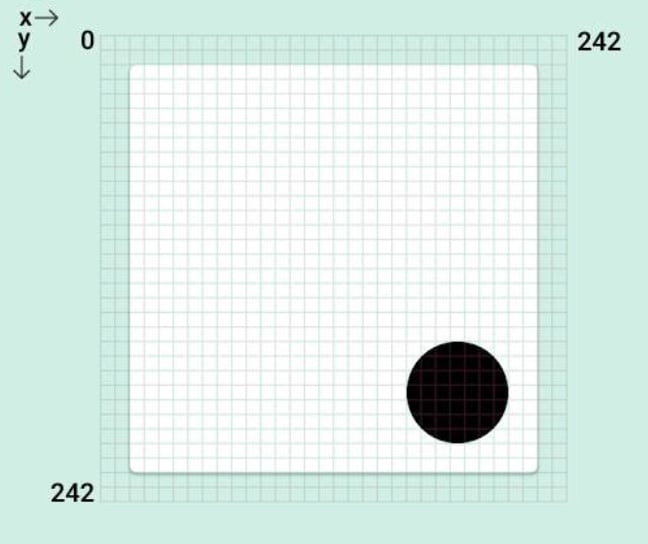 In the image above, you can see how the pixels are organized based on coordinates beginning with from (0,0) to (242,242). The X-axis runs from left to right, while the Y-axis runs from top to bottom. Each pixel represents coordinates, which serve as the foundation for arranging the UI elements on the screen. Use this information to place shapes or custom elements on the Canvas. Canvas allows you to position visual elements exactly where you want them.