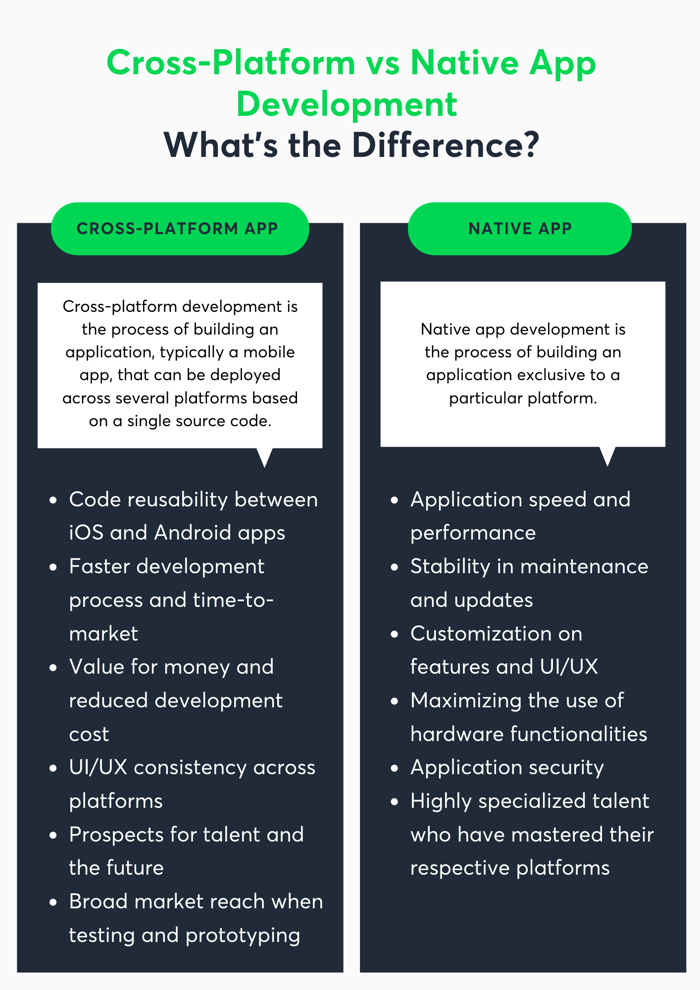 Because deploying an app on both Android and iOS with cross-platform development is cheaper and faster, businesses can reach more customers or users more efficiently. This makes cross-platform a better fit for those still testing an idea, hypothesis, or prototype that needs to be deployed in multiple platforms.