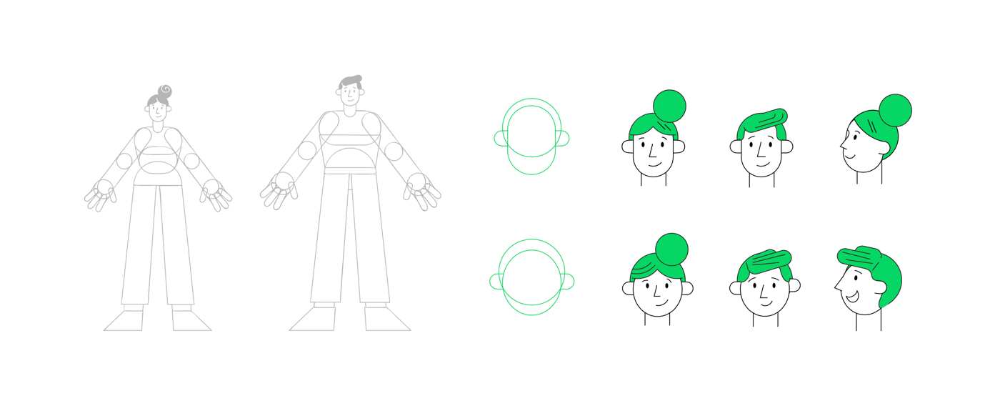 We started with the most popular solution, which is Illustration Guidelines. Describing the rules seems to be quite simple. And so it is, if you already have a specific style. We wanted to create illustrations and rules at the same time. But when we were creating the style, we changed a lot of things and defined them so that our guidelines were constantly evolving and changing their face.