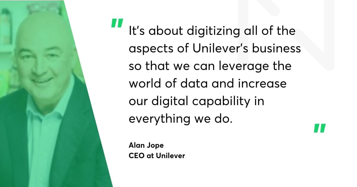 How is it possible that a behemoth like Unilever transformed itself? It has 2.5 billion daily customers, 161,000 employees, owns 400-plus household brands, and runs 300 production facilities operating across 190 different countries. Orchestrating digital transformation efforts required full dedication and placing digital technology at the heart of its business strategy.