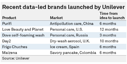 Streamlining manufacturing and getting to know consumers can help bring products to market much faster. Unilever launched 10 new data-driven brands in 2018. Each launch was 40%-50% quicker than using old methods, bringing new products from the idea to the shelves in as little as 6 months .