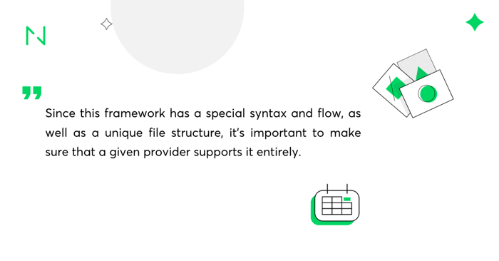 Since this framework has a special syntax and flow, as well as a unique file structure, it’s important to make sure that a given provider supports it entirely. You should check if your host: