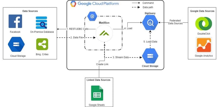 Let’s take a quick look at an example of Matillion architecture, applied to the Google Cloud Platform: