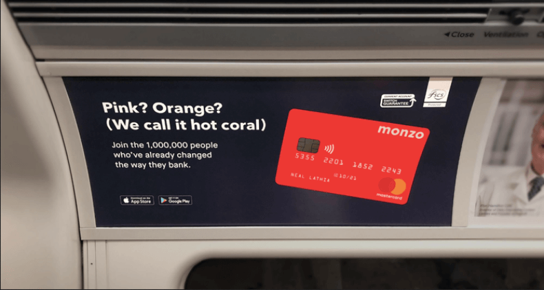 First, the company expanded its marketing team in late 2018, from around six people to a team of 20. Next, Monzo launched a relatively small ambient media campaign on subway trains operating in the London Underground network. After that, Monzo launched a major nationwide TV ad campaign that ran in early 2019, which resulted in a spike of new users who took Monzo beyond 2 million active users by mid-2019.