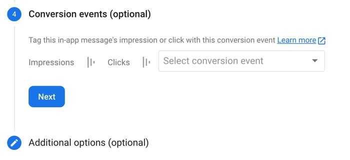 There are two more additional steps. The first one is assigning conversion events. The second one gives us an option to send optional data that can be handled in-app. Unfortunately the react-native-firebase package doesn’t provide any methods to handle it.