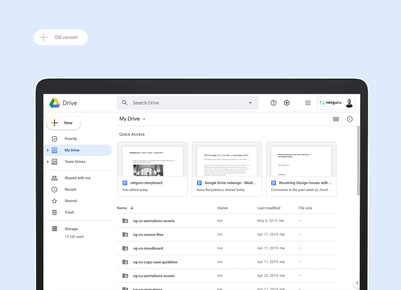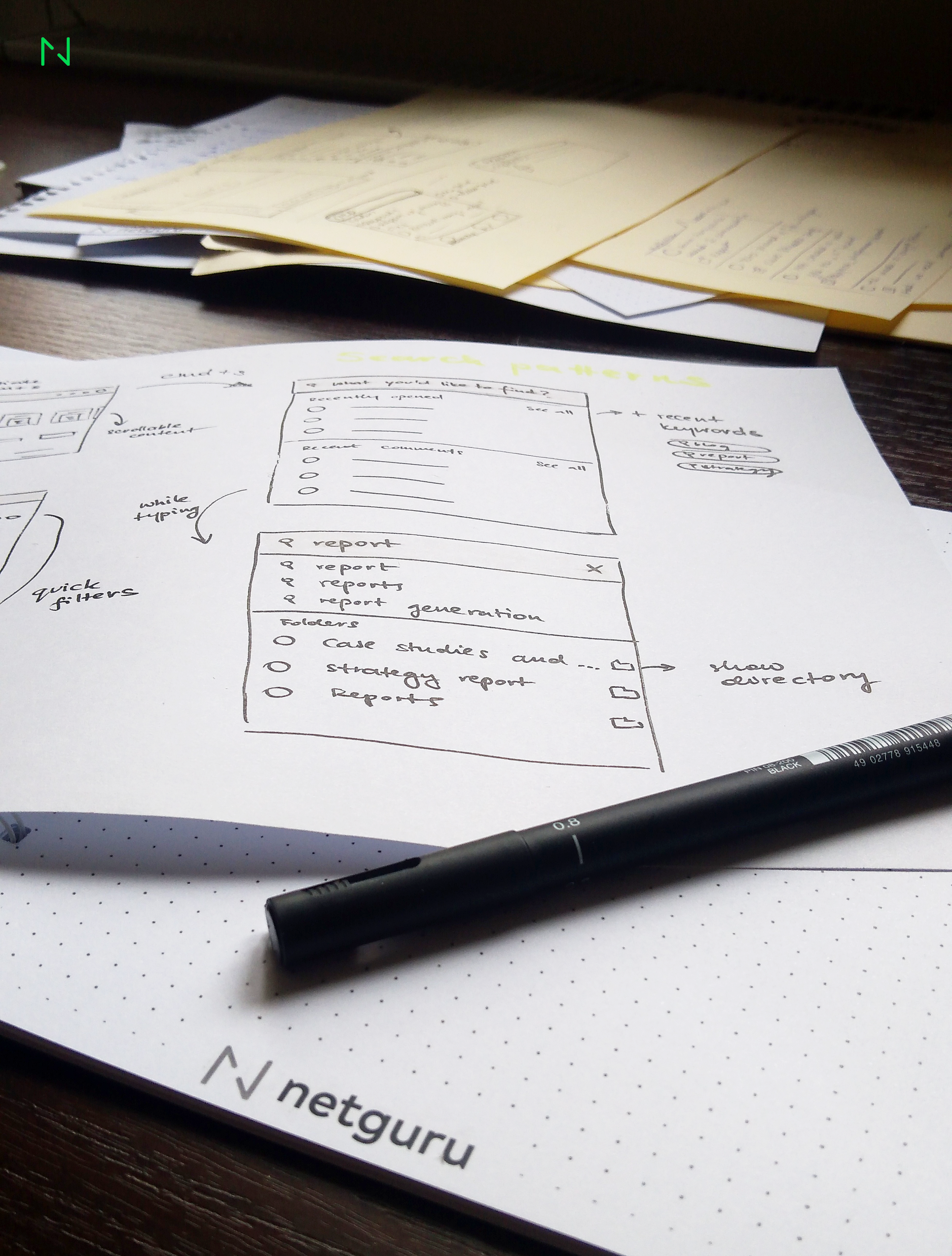 Although Google Drive is one of the most popular cloud-based file storage solutions, users say that it’s difficult to find their way through all the documents, especially those they didn’t create themselves. In Netguru, 600 people work either remotely or from one of the seven offices. We work in different departments and on hundreds of different projects – each team produces and store many files, scattered throughout thousands of folders. This makes Netguru employees the perfect audience on which we could study some potential improvements to Google Drive.