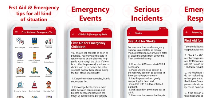 Another app on our list is First Aid and Emergency Techniques. As the name states, this mobile health app contains all the necessary information related to providing first-aid assistance.
