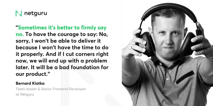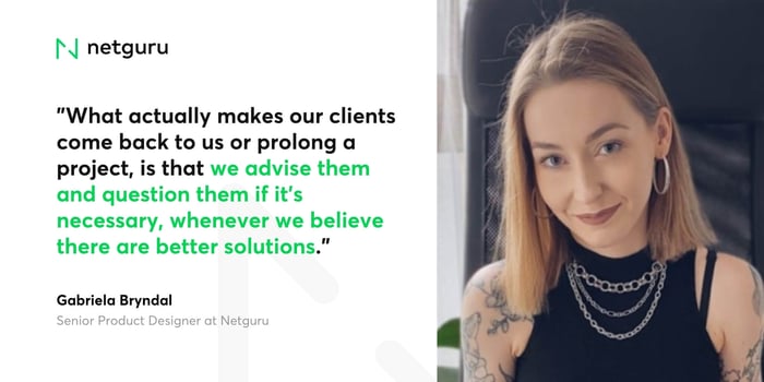 Of course, there are clients who may not appreciate this approach and favor keeping things simple and getting work done to the point it was requested, as Szymon Sobecki, a quality assurance specialist at Netguru, points out.