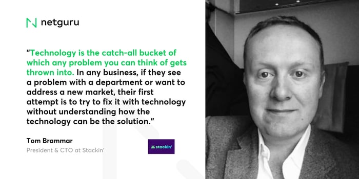 “Technology is the catch-all bucket of which any problem you can think of gets thrown into,” Brammar says. “In any business, if they see a problem with a department or want to address a new market, their first attempt is to try to fix it with technology without understanding how the technology can be the solution.”
