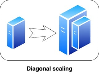 Diagonal scaling is a combination of vertical and horizontal scaling. While your instances are scaled out to handle more traffic, they can be scaled up at the same time. Additionally, you can configure settings to trigger automatic scaling based on usage thresholds, ensuring optimal resource management and preventing performance degradation.