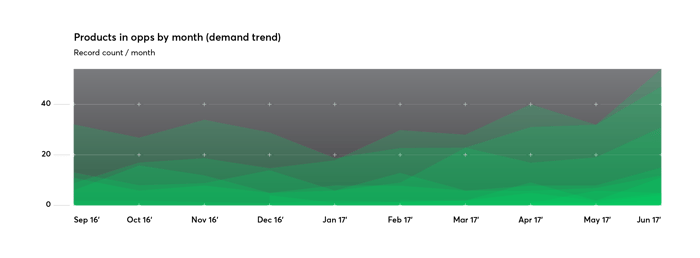 This chart shows the demand for our services over several months, using the number of various services (such as Ruby on Rails development or product design) as they appeared in business opportunities each month. As you can see, we’re observing stable growth, which is no accident. Our increasing predictability has had a direct impact on customer satisfaction, which led to more referrals. These, in turn, have brought about 50% of our new contracts.