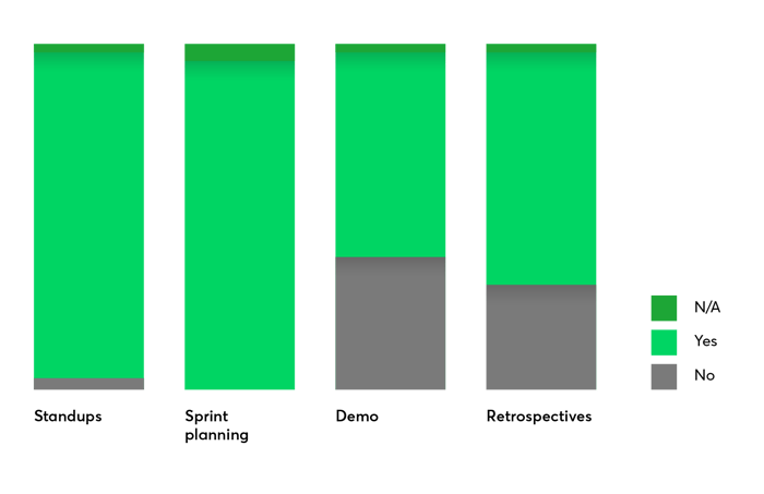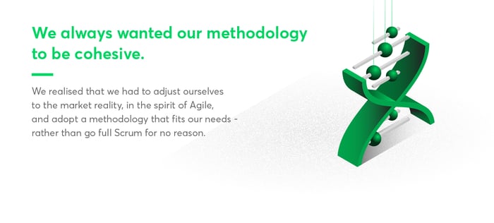 We have always managed projects the Agile way, but at first, we went with our gut feeling instead of relying on hard facts. Our approach wasn’t systematic enough – we would change our ways depending on particular clients and situations. In the first two quarters of 2017, we decided to consolidate the way we manage projects. It’s not that we’re suddenly super strict, but we now use elements that are set in stone (standups, sprints, retrospectives and demos) around which we base each project’s lifecycle.
