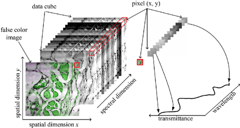 Fig. 2: Data cube with spectral/spatial dimensions. (source:researchgate.net)