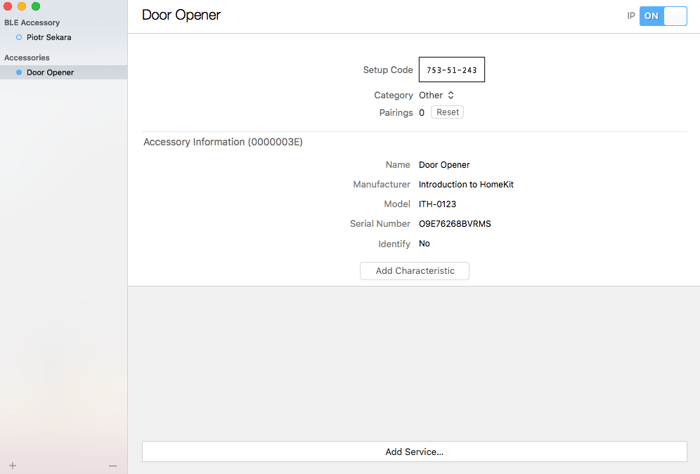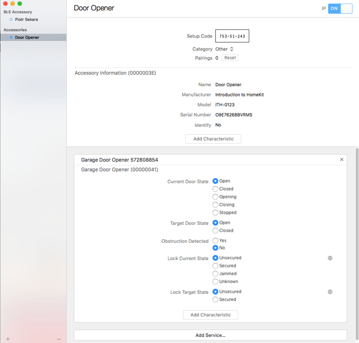 Great! Now we have a simulated device fully set up. We can open our app or Home app and just add this device. You can change all these characteristics with your phone or with simulator app.