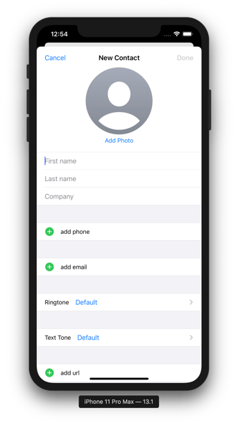 (…) new in iOS 13 we have a standard design for presentations (…). For example, if I'm here in the contacts app and I tap plus to add a new contact, we have a new presentation style that looks like this, rather than the full screen presentation that we had before. You can see that the root view controller's view is not as scaled down and not removed from the view hierarchy.