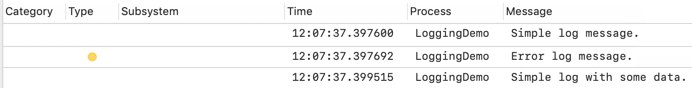 os_log(.default, log: .default, “Simple log with some %s.”, “data”)