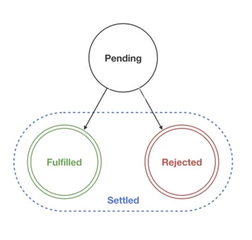 A promise is basically a placeholder for the future outcome of asynchronous code. When started, it changes its state to Pending, informing you that an operation is in progress. A promise can be in two other states - Fulfilled and Rejected - whenever the job performed by it has ended (either with success or failure). A promise in either of these two states is Settled. Keep in mind that promises can’t be “unsettled” after changing their status from pending, nor can they be cancelled. Then, the developer can decide what to do with the outcome of the operation (see how control is now within the main program?).