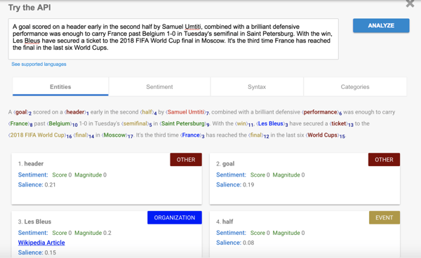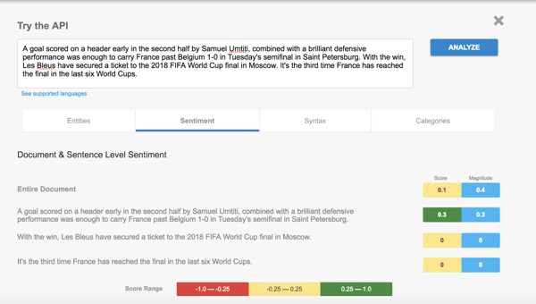 - Natural Language Processing is based on statistical methods and some Machine Learning models. With enough input training data these methods can learn how to predict sentiments/categories/entities in natural language. Google NLP provides a well-trained model which you can use immediately. However, it is important to mention that best statistical results are given when the analyzed text is long enough. The Basic Google NLP limit of text length is 120 characters, but the longer text we have, the better predictions we get. That’s why Google NLP is not the best solution for: