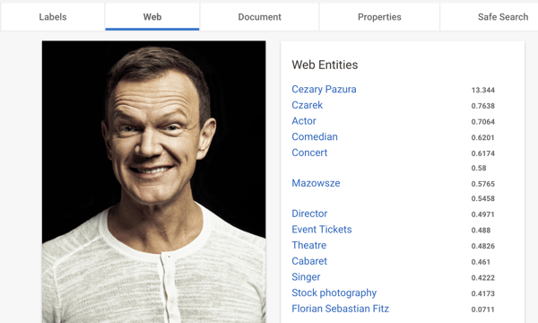 - Recognition of people - at least not always. With the power of Google web search we were able to detect the Polish president, but this might not work with less popular people.
