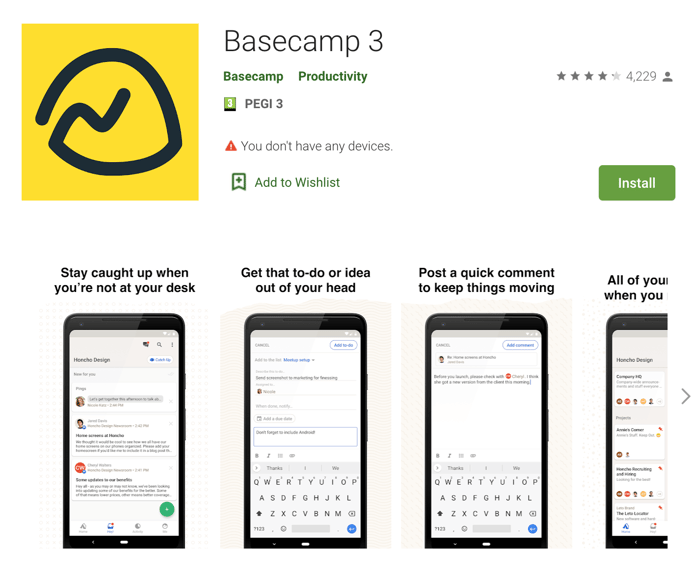 500,000+ downloads from Google Play, average rating of 4.2 from 4,229 reviews.