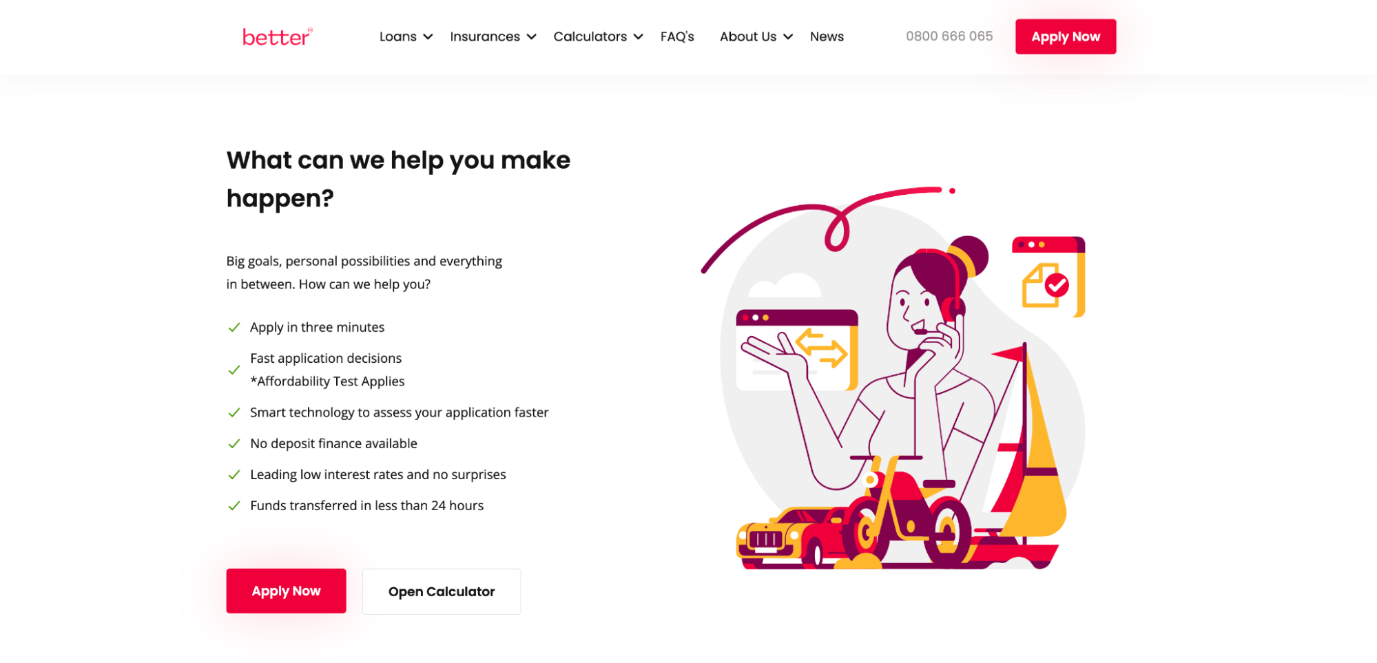 Take a look at the example below. In our project for Better, we used a bright red color for the CTA in order to catch the user's eye. There is the same, simple, and direct copy applied on all key call-to-actions within the page, so the user knows what to expect. We also made sure to keep the right balance and don’t overuse the CTA, as it might overwhelm the visitors.