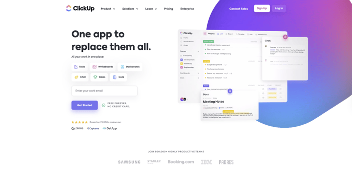 ClickUp uses some of the app’s screens to provide the audience with a sneak peek of what using their product might actually look like.