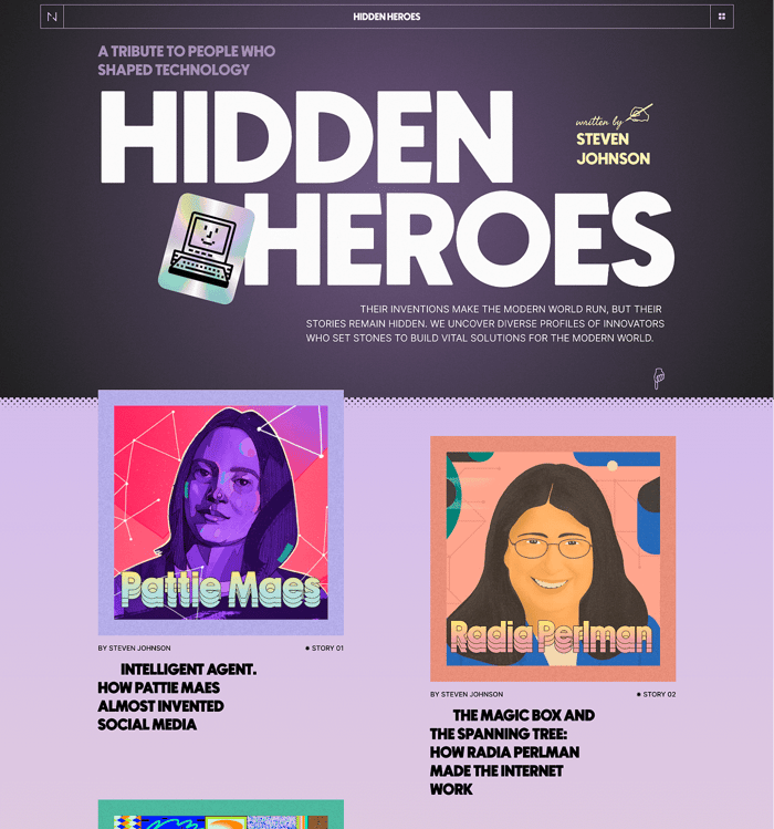 One example of strong and highly characteristic visual communication is Netguru’s “Hidden Heroes” project where we tell the stories and celebrate the people behind various tech breakthroughs. The site has been awarded The Drum Awards 2022 – a global program that recognizes the best businesses and people from the marketing and communications industry.