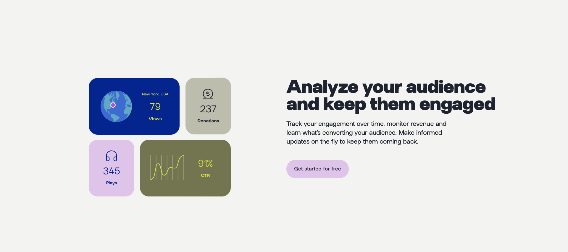 The company opted for high-quality visuals and a trendy UI style. Their CTA is very clear and provides users with straightforward information stating they can try the product for free. The offer’s features are highlighted and described as user-oriented benefits.