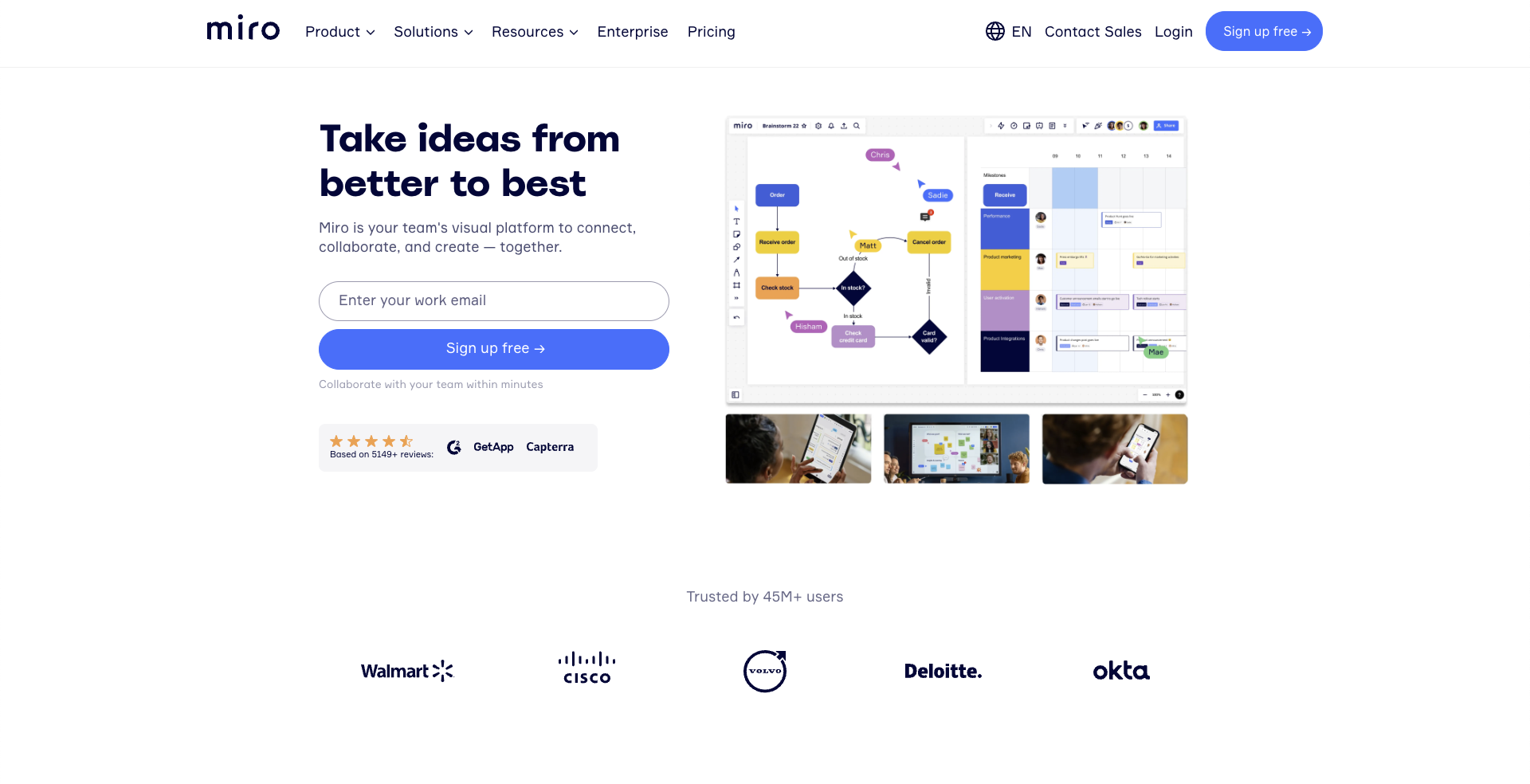 Another way Miro uses social proof is by creating a separate section and an additional page. The company decided to use the section to present written testimonials from their customers. After clicking on the CTA button above the reviews, the users are redirected to a “case study page” where they can read more stories from Miro’s users.