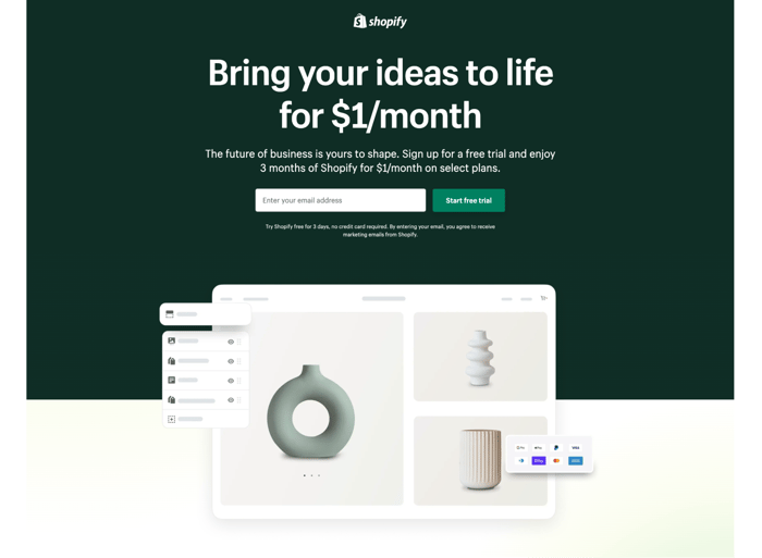 Shopify knows how to keep it simple. Their trial page is very minimalistic with highlighted benefits and the price of their service.