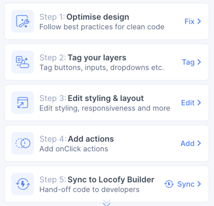Before generating the code with the Locofy plugin, design should go through a few steps of optimisations to improve quality of the code. These preliminary steps include: