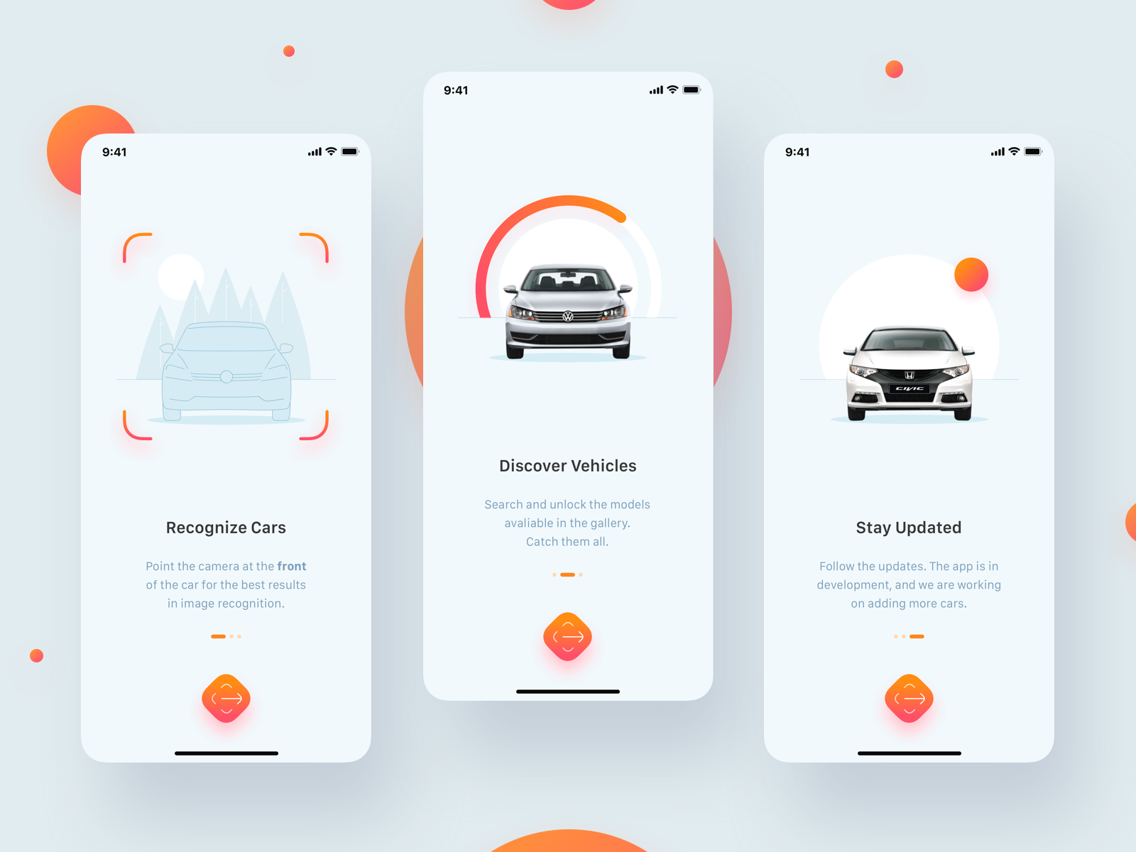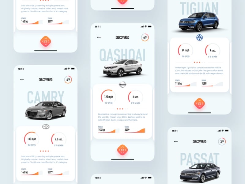 Model-View-Controller (MVC) was chosen as architectural pattern as the application was not very huge and it allowed us to do so. At the same time, some nested view controllers are presented in the app, especially on the main recognition screen.There is no internet connectivity needed, and the cars’ parameters are represented in a local JSON file, which is the same on both platforms: iOS and Android. CarLens has a beautiful UI (thanks to our designers!) and animations. We used Lottie, a framework created by Airbnb, and custom animations to achieve that kind of interaction. The animated car list screens were implemented with the help of a custom CollectionViewFlowLayout. Thanks to this approach we didn’t clutter the View Controller with bunch of delegate methods responsible for the layout. We think that our pragmatic approach worked very well in this situation. We didn’t encounter any problem with the size of View Controllers, which is the main problem of the MVC architecture on iOS. When the View Controller started to grow, we just added another nested one or moved some of the logic to separate classes.