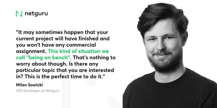 If developers want to explore new frameworks or learn how to develop apps in a new stack like Flutter, then this is their opportunity. Netguru's Research and Development Team guides others through this process and offers support when needed.