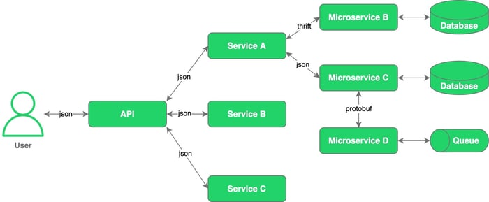 Often, when developing a microservice, a team has the freedom to choose technologies that suit them the best, including programming languages and database.
