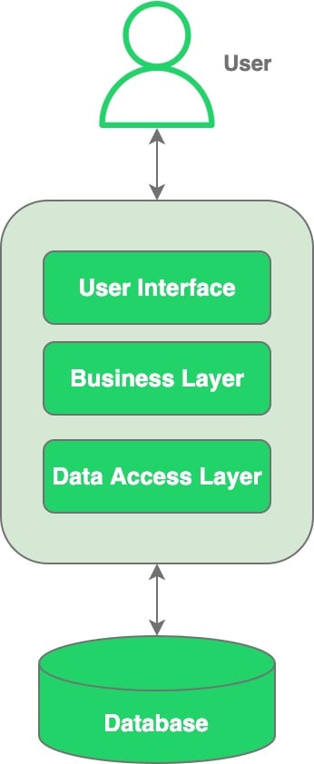 All functionalities are tangled together in a single deployable package. Depending on the size and complexity, it is good practice to divide the monolith into multiple modules which are tightly coupled together. The diagram below represents the idea behind the monolithic architecture.
