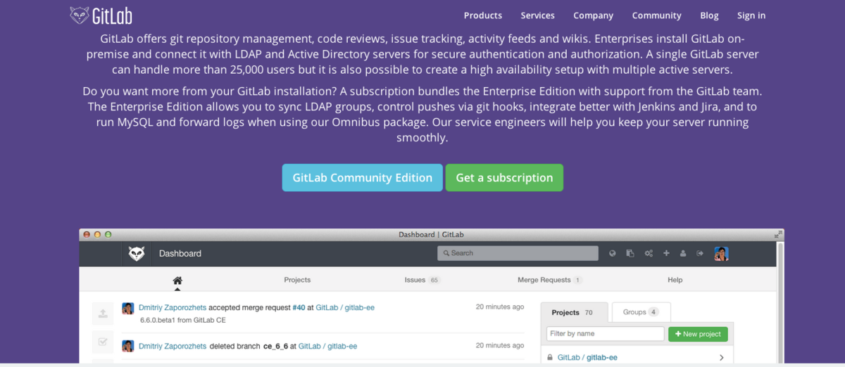 Project URL: GitLab. Fork it at github.com/gitlabhq/gitlabhq/. Stars: 13 594.